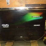 4. The repaired set up and running. Sure do need to clean that mirror! I was not able to verify that this set had sound before the repair and now I can see why - it was on the DVD input!